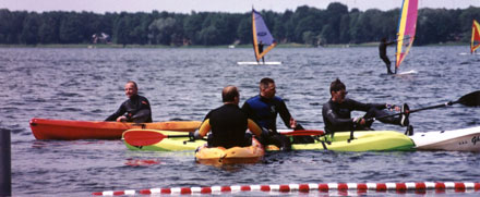 für diesen Zweck entwickelten Sit-on-Top Kajaks statt.